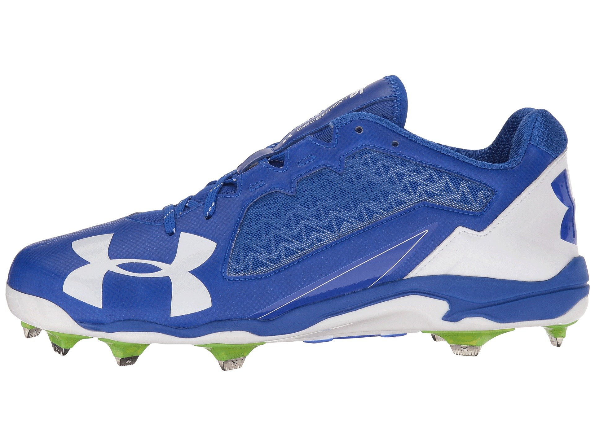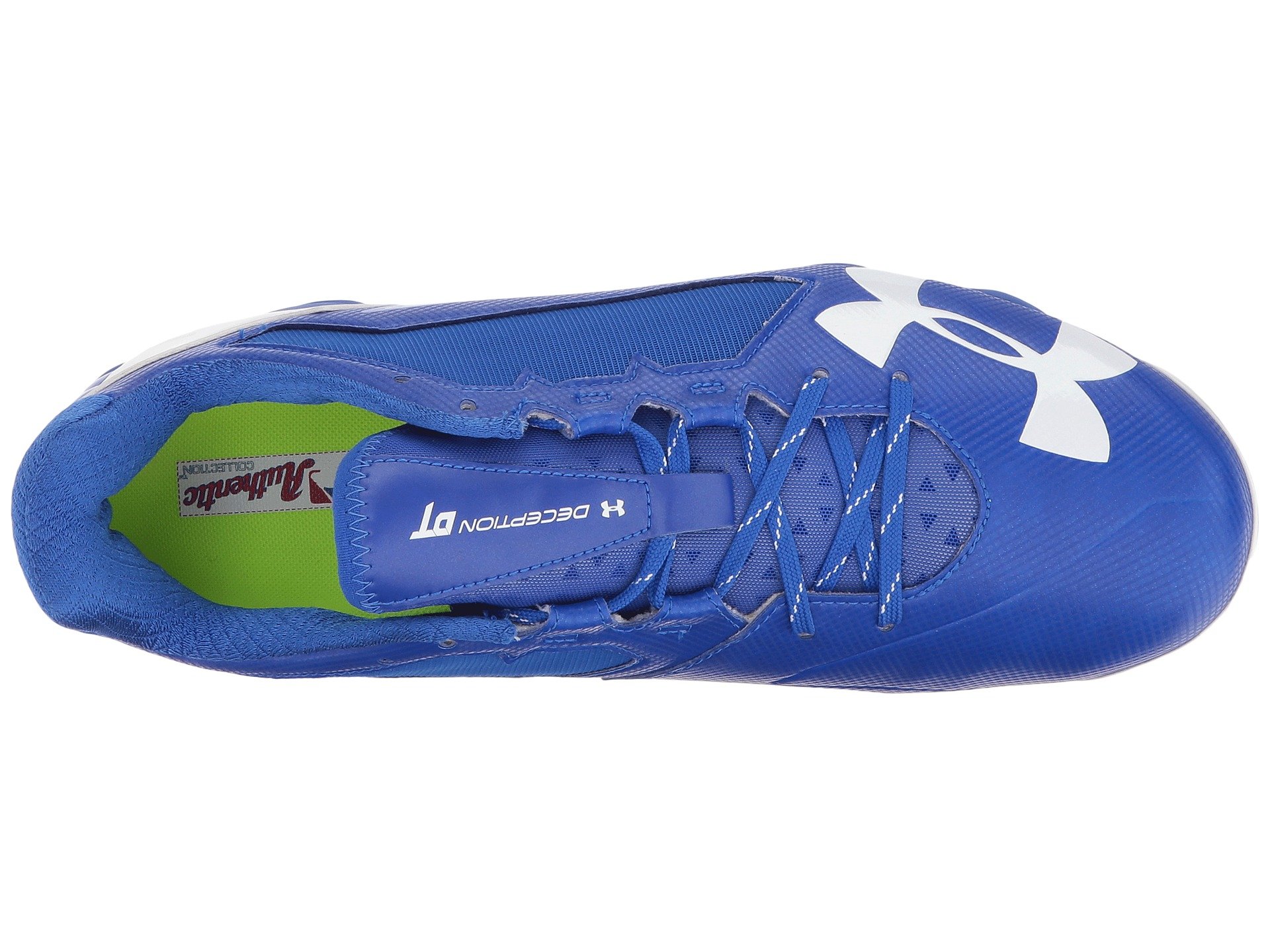 | Product Information SKU: #8761054Show off your all-star moves in the Under Armour? UA Deception Low DT baseball cleat.Synthetic and textile upper materials. UA ClutchFit™ upper technology wraps the foot and ankle like a lightweight second skin for enhanced support and a great fit. Built-in 3D-molded tongue hugs the foot.Lace-up closure. Breathable fabric lining offers a great in-shoe feel. Foot-contouring 4D Foam? footbed molds to the foot for locked-in comfort. Micro G? cushioning provides light, ultra-responsive, low-to-the-ground performance that boost natural stability and comfort. Rotational Traction technology maximizes rotational capability for explosive speed and power. UA DiamondTips are hybrid metal and molded cleats that deliver lightweight performance that cut through any surface on the diamond. Imported. Product measurements were taken using size 11, width D - Medium. Please note that measurements may vary by size.Weight of footwear is based on a single item, not a pair.Measurements: Weight: 1 lb |