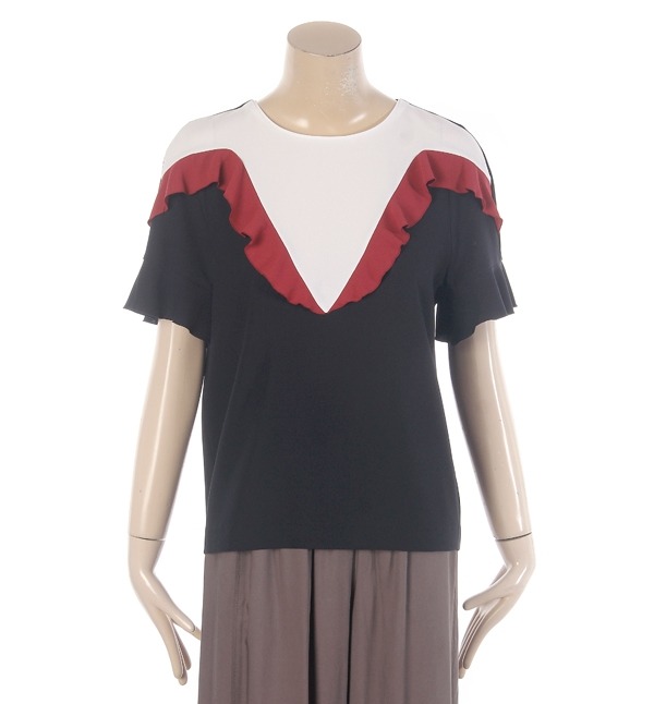 CC collect, 배색 프릴 디테일로 세련스러운 스타일 감각을 연출하는 블라우스입니다