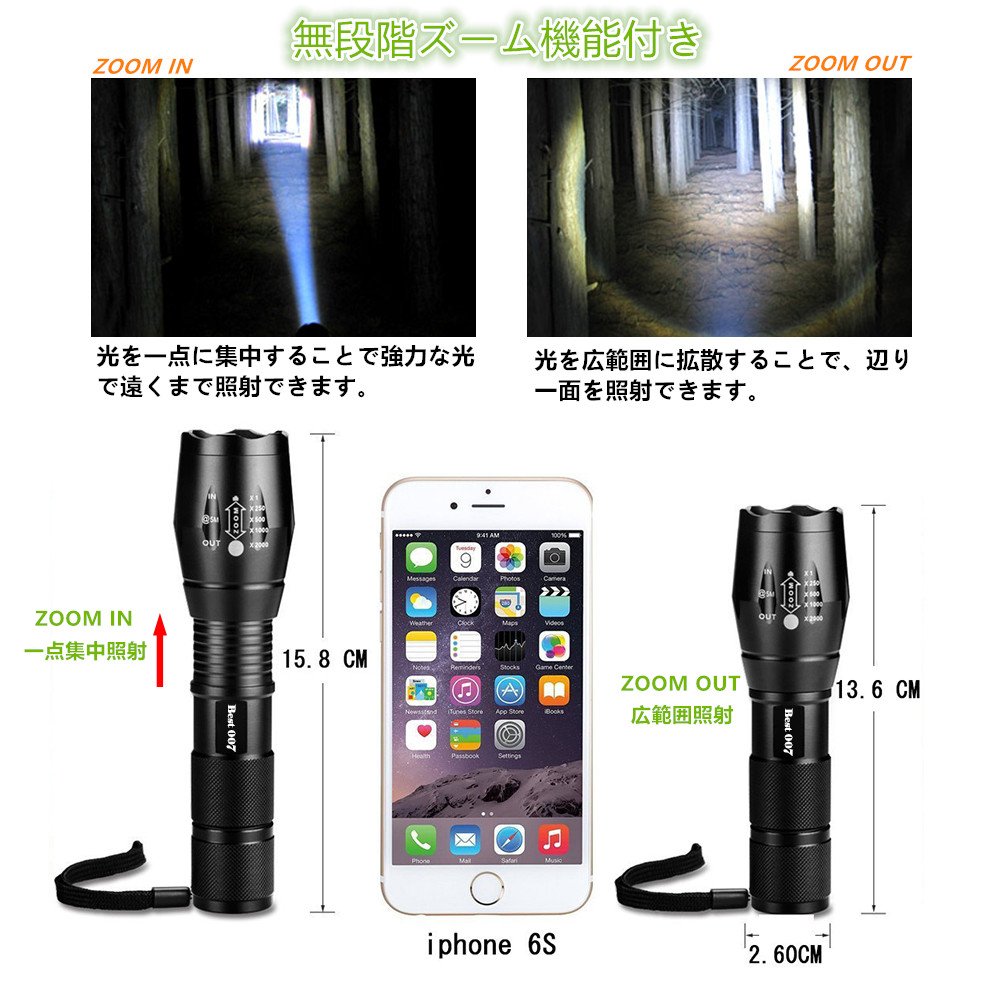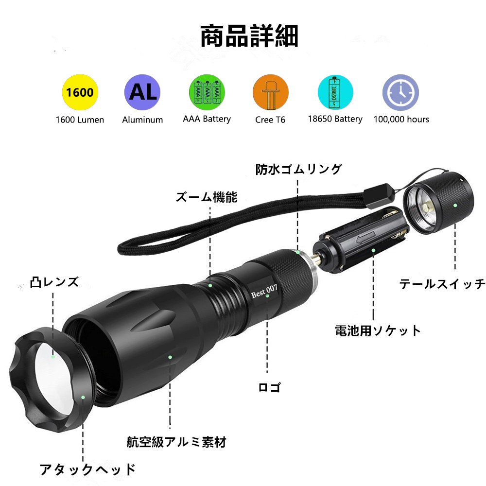Set contents: Light body x 1 (strap included), 1 lithium ion battery (18650 type 3.7 V to 4.2 V 3600 mAh), AAA battery holder * 1,18650 Battery rubber hose * 1, dedicated charger 1