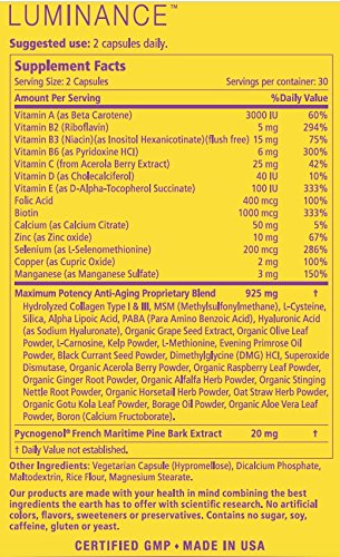 -. Title : LUMINANCE®, Maximum Potency Anti-aging Formula - Hair, Skin, Nails, Eyes, Bones & Joints - 60 Veggie Caps - Rediscover Your Beauty!