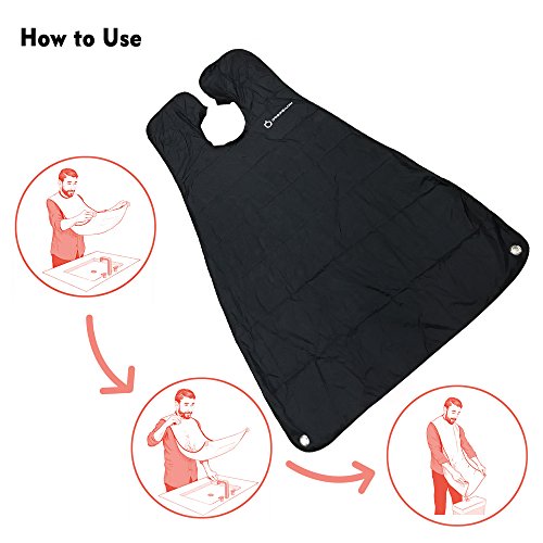 - Excellent Design- Large Beard Catcher apron (47x31 inch) , comes with a separate travel pocket, so you dont have to worry that the facial hair will stay on the bib. Use this bib with clipper, beard trimmer to get a perfect experience.