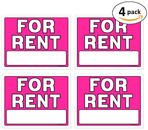 For Rent Signs, 11 x 14 Inch, Neon Fluorescent Pink, Pack of 4