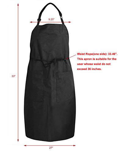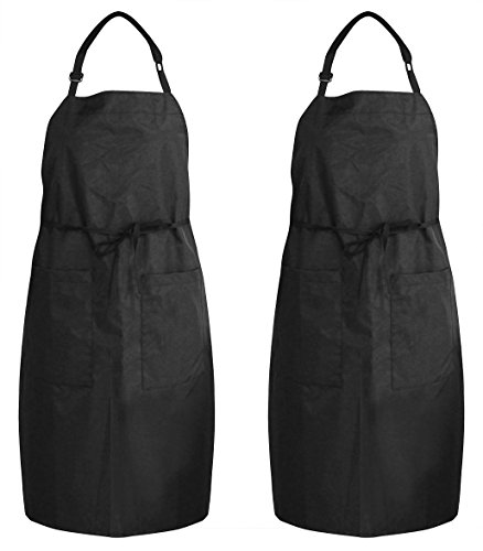 PAG 2 Pack Adjustable Waterproof Cooking Grilling Baking Bib Aprons with 2 Pockets for Women Men Chef, Black
