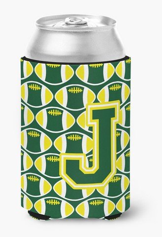 Caroline's Treasures CJ1075-JCC Letter J Football Green and Yellow Can or Bottle Hugger, Multicolor