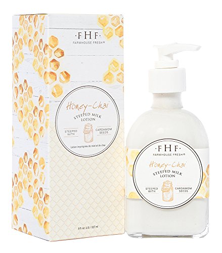 97% Natural - Vegan - Gluten Free A gorgeous spiced-milk infusion of organic coconut milk and sweet, sultry organic cardamom. This soft but delicious treat basks dry skin in nourishment and hydration. If you like warm, soft fall notes, Honey-Chai is most reminiscent of our Whipped Honey Salt Scrub. Yum! To make this uncommonly crafted lotion, we slow-steep USDA organic cardamom into creamy coconut milk. This freshly steeped milk is then blended into our lotions, making these the most precious & pristine bottles of infused, feathery softness you've ever enjoyed. These Steeped Milk Lotions are a thicker consistency than our Body Milk Lotions, plus they have a velvety smooth feel you will adore!