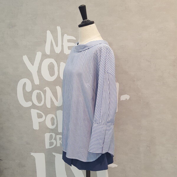 유니크한 입술넥라인이 세련미를 더해주는 폴리혼방의 쾌적한 착용감을 느낄수 있는 소재로 멋과 활동성이 우수한 블라우스입니다