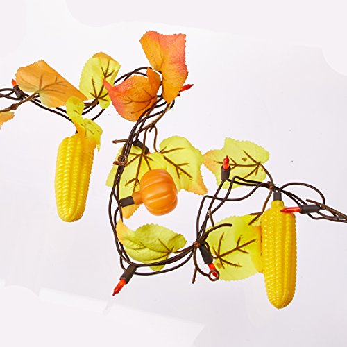 - Maple leaf lighted garland with pumpkins and corn on brown wire