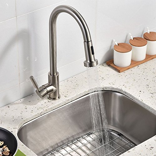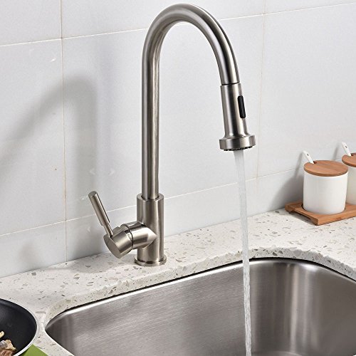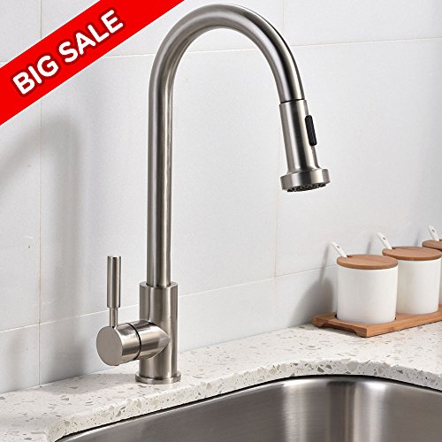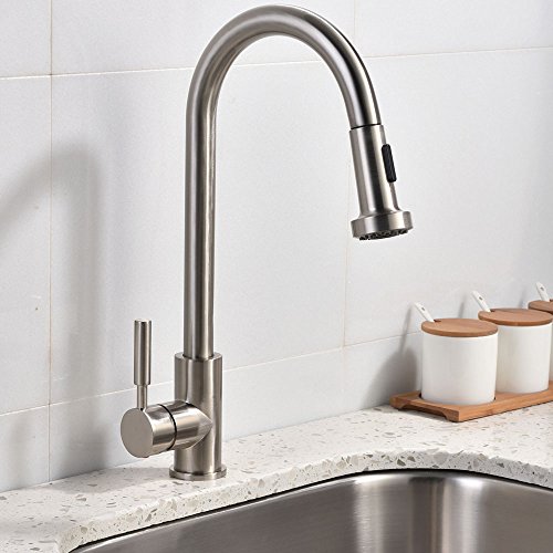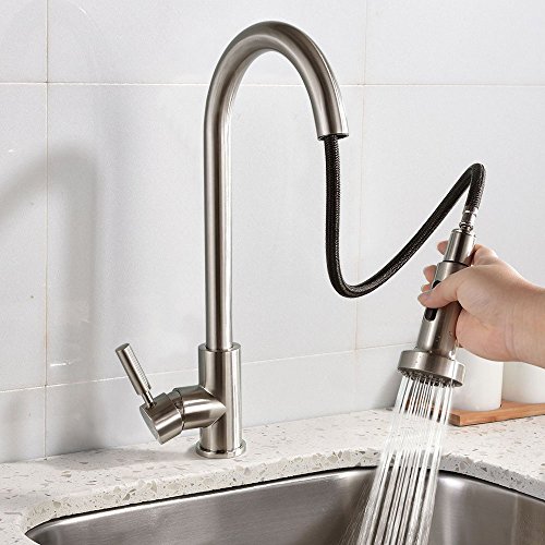 Best Commercial Stainless Steel Single Handle Pull Out Sprayer Kitchen Faucet, Pull Down Kitchen Faucets Brushed Nickel