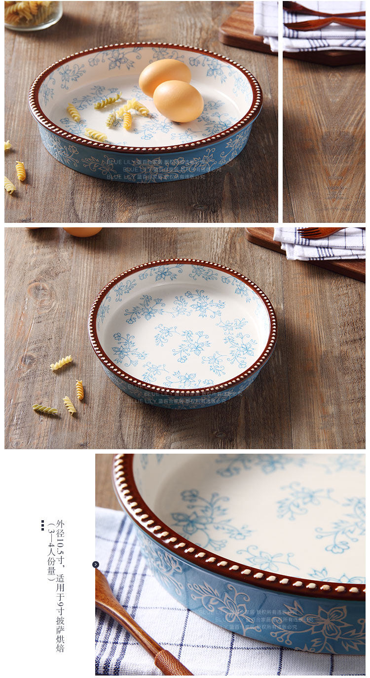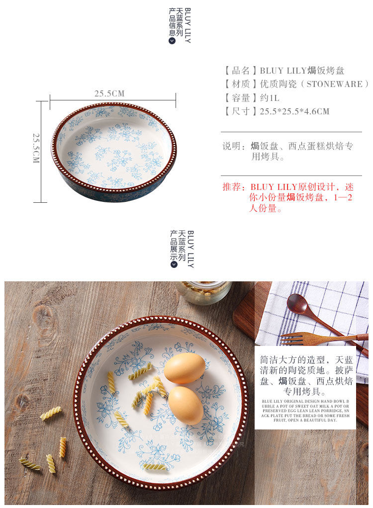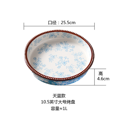 天蓝色大容量陶瓷披萨烤盘烤碗焗饭盘 蔬菜沙拉盘炒菜盘家用汤盘