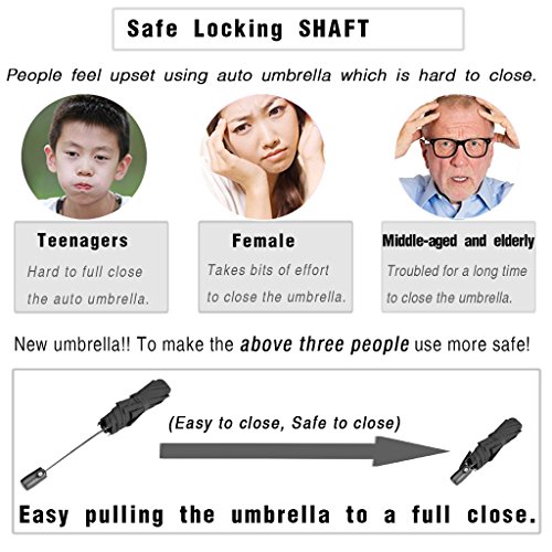 About Us: LANBRELLA Umbrella, light weight with big arc that will keep you dry in the rain. LANBRELLA Umbrella, more safety with anti-rebound system that will closed umbrella safer, easier. Specifications: Color: Black 8 Resin-Reinforced Ribs 46 Inch arc Package Includes: 1 x LANBRELLA Umbrella 1 x LANBRELLA Storage Pouch Attention: 1 Lanbrella umbrella has Auto Open/Close function, It is very convenient to open or close the umbrella only by pressing the button on the handle. In one second it will OPEN/Close to prevent you from the rain pour. So if you are the first time to use it, remain calm when it suddenly Open/Close in such short times. 2 The tension of the rod is slightly larger , Ms. might need little more effort to close the umbrella 3 Although this umbrella's anti-rebound system works well, it still need to locked the rod back into right position when close the Umbrella. Only when the umbrella is locked the button can be pressed to auto open the umbrella again. RF Will it work with battery? No, this works without battery. The anti-rebound system works with physical principles. Customer Service: We focus on the quality in every detail, the manufacturing process is strictly inspected to ensure no defects. We are confident that Every LANBRELLA Umbrella you bought is high quality and you'll love our Umbrella. Of course if you are not satisfied, please let us know, and we will do our best to rectify the problem. 0 |