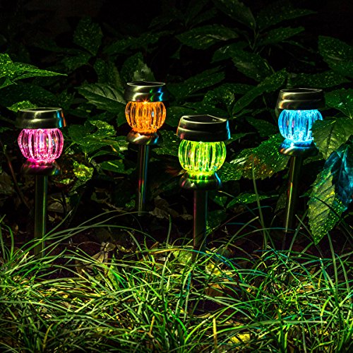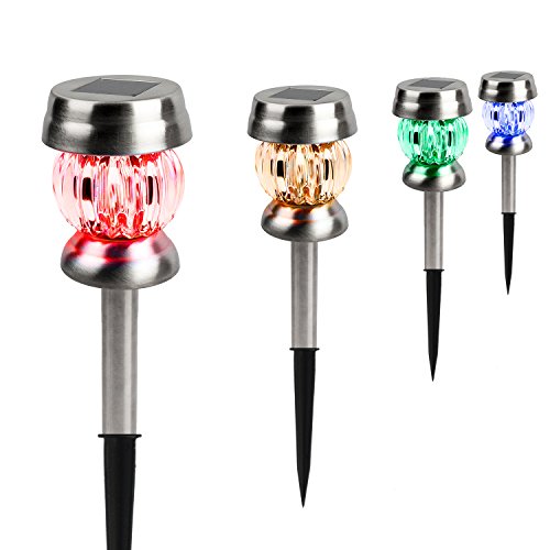 GIGALUMI Color-Changing Solar Lights Outdoor Garden Led Light Landscape / Pathway Lights Stainless Steel-4 Pack