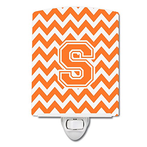 Caroline's Treasures Letter S Chevron Orange and White Ceramic Night Light, 6 x 4", Multicolor
