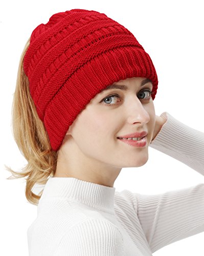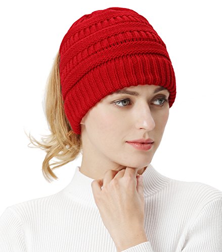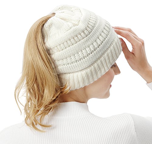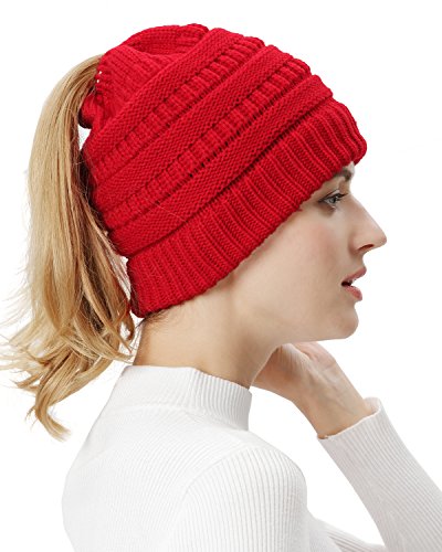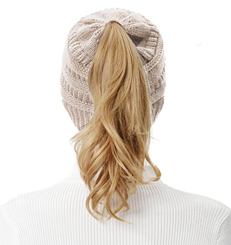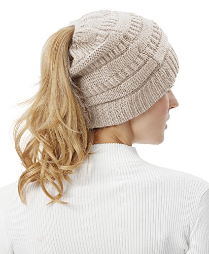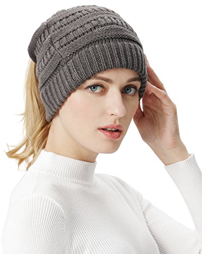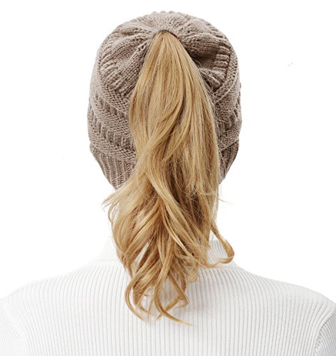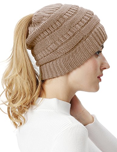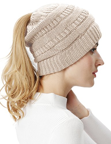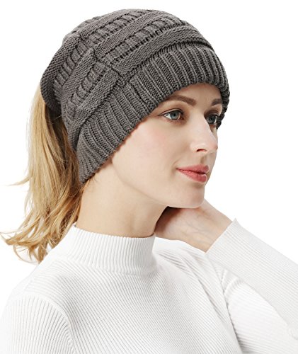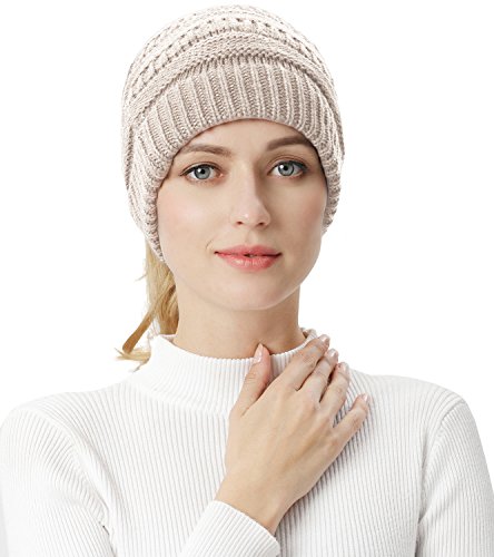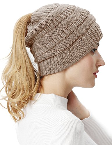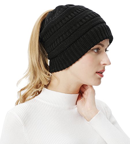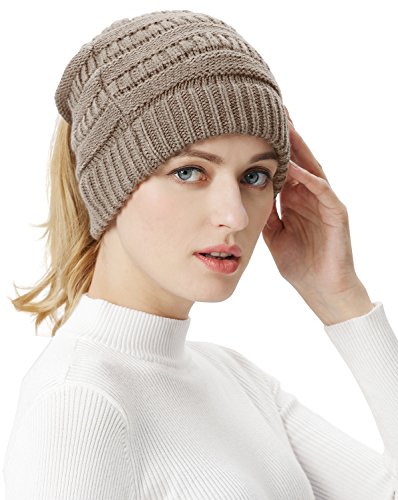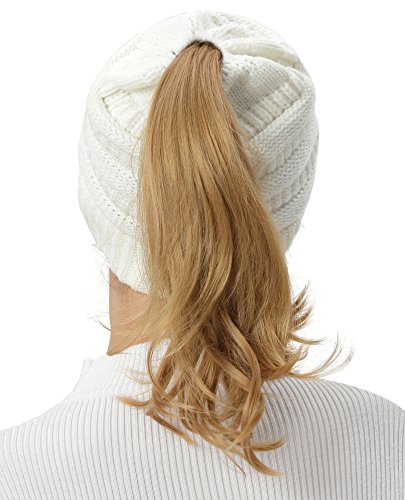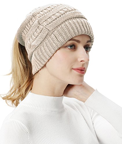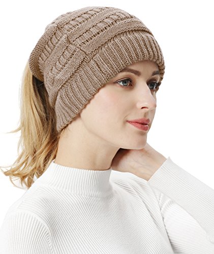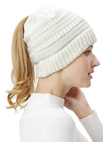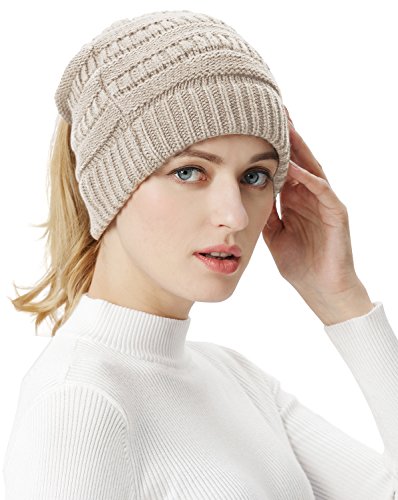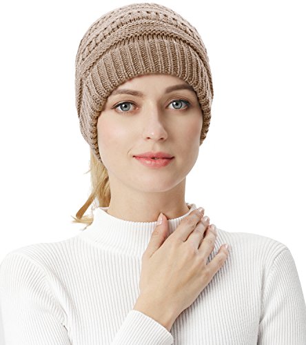 | Lovful Women's Winter Cable Knit Warm Ponytail Beanie Hat |