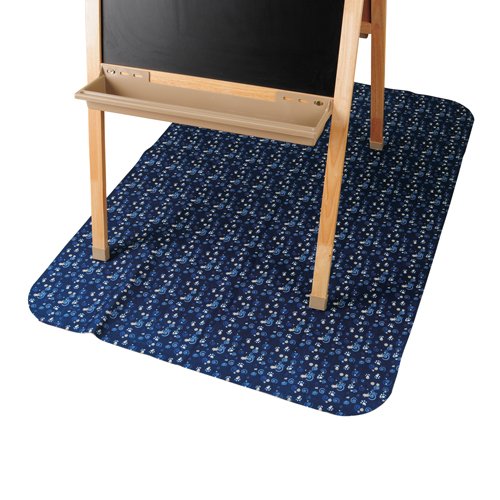Use this 42" x 59", machine washable/dryable, floor mat under easels or tables to protect floors from art spills and scratches. Non-Slip waterproof backing keeps mat in place and fabric fiber is made from over 50 percent recycled material. Made in USA.