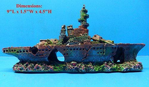 -. Binding : Misc. -. Brand : Aquarium Décor Ornaments -. Color : as the piture shows. -. EAN : 0717010381646 -. Feature : NICE DETAILED, HAND PAINTED REPLICA OF SUNKEN BATTLESHIP ON SEA FLOOR / APPROXIMATE DIMENSIONS: 9"L x 1.5"W x 4.5"H / SAFE AND DURABLE FOR USE IN ALL AQUATIC ENVIRONMENTS PROVIDES SEVERAL SWIM THROUGHS AND HIDING AREAS TO HELP DECREASE STRESS AND REDUCE AGGRESSION WHICH CREATES A HEALTHIER ENVIRONMENT FOR YOUR TANK INHABITANTS -. Label : Aquarium Décor Ornaments -. Manufacturer : Aquarium Décor Ornaments -. MPN : 1 -. PackageQuantity : 1 -. PartNumber : 1 -. ProductGroup : Pet Products -. ProductTypeName : PET_SUPPLIES -. Publisher : Aquarium Décor Ornaments -. Size : 9"L x 1.5"W x 4.5"H -. Studio : Aquarium Décor Ornaments -. Title : Sunken Battleship Ws002m Aquarium Resin Mini Ship Wreck Fish Tank Decor -. UPC : 717010381646