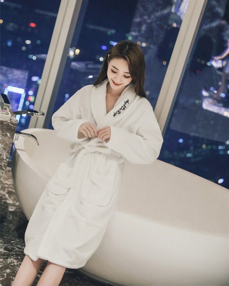 製品の説明151【素材】:綿/ポリエステル【カラー】:ピンク、ホワイト 【サイズ】:(約)ワンサイズ:*着丈:100cm *肩幅:45cm *バスト:110cm *袖丈:55cm 連携キーワード:着る毛布 ルームウェア レディース 秋冬 ふわもこ 前開き フランネル 着る毛布 ローズ刺繍 長袖パジャマ 厚手ガウン 部屋着 パジャマ 寝巻き 2色
