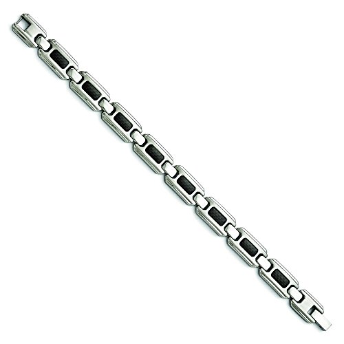 Stainless Steel Polished and Brushed Black Carbon Fiber Inlay Bracelet - 9 Inch - In Solid Stainless Steel - JewelryWeb Style: QTB312151 - FREE gift-ready jewelry box