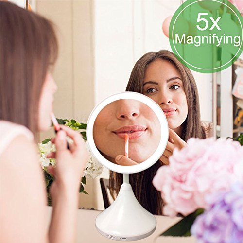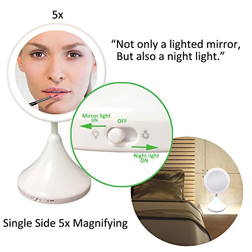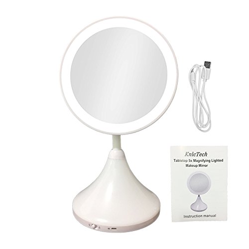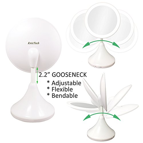 KnicTech 5x Magnifying Lighted Makeup Mirror with Night Light,Tabletop Vanity Mirror,5.5 Inch Diameter,360 Degree Adjustable Gooseneck,USB or Battery Operated