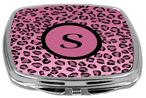 Rikki Knight Compact Mirror, Letter s Initial Light Pink Leopard Print