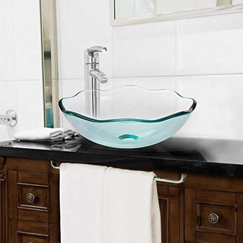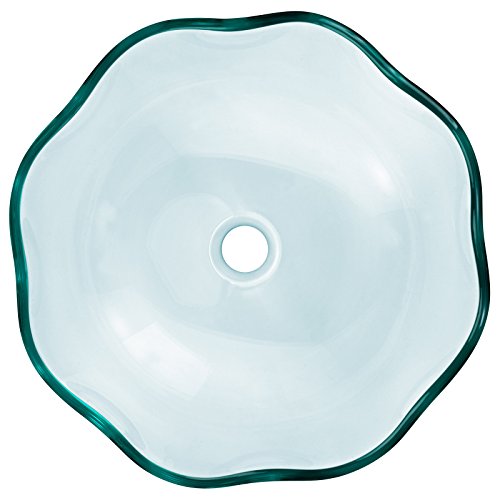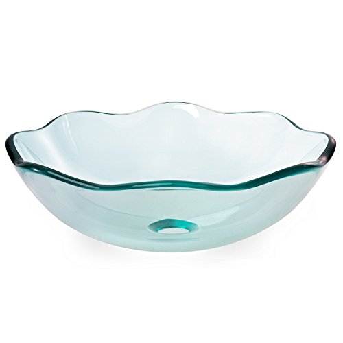 Tempered Glass Vessel Bathroom Vanity Sink Scalloped Bowl, Clear Color