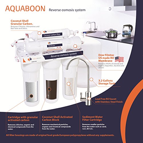 Aquaboon 50 Gallons Per Day 5 Stage Home Drinking Reverse Osmosis Filtration System