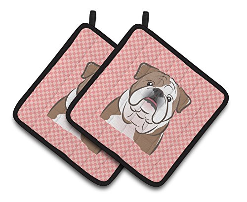 Caroline's Treasures Checkerboard Pink English Bulldog Pair of Pot Holders BB1219PTHD, 7.5HX7.5W, Multicolor