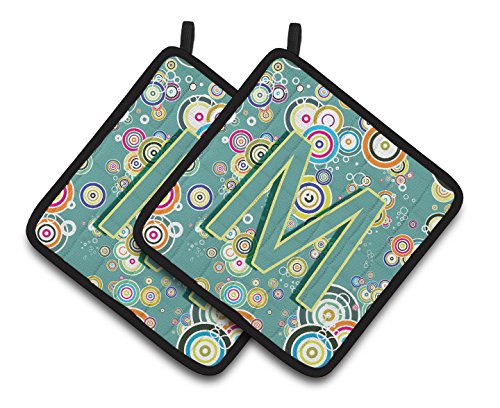 Caroline's Treasures Letter M Circle Teal Initial Alphabet Pair of Pot Holders CJ2015-MPTHD, 7.5HX7.5W, Multicolor