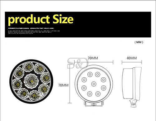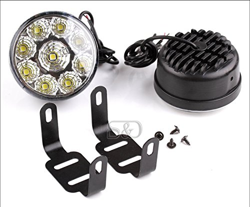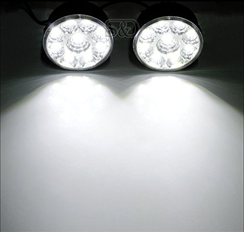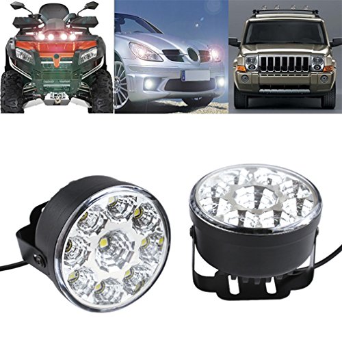 Description: LED Chip: Epistar LED Quantity: 9 LEDs Voltage: 12V Wattage: 4.5W/pcs Luminous Intensity: 8-10LM/pcs Color: Cool White Color Temperature: 6000-7000k Working Temperature: -40?? to 60?? Dimension: 70mm(D) x 40mm(H) Life: 5, 00,00hours Gross Weight: 265g Net Weight: 176.9g Package Includes: 2 x LED Running Lights 1 x LED Power Cord 1 x Fittings of Mounting Screw