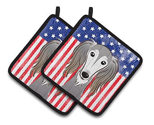 Caroline's Treasures American Flag & Saluki Pair of Pot Holders BB2159PTHD, 7.5HX7.5W, Multicolor