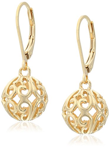 Dangle earrings featuring openwork filigree ball drops in 14k rose gold plated sterling silver