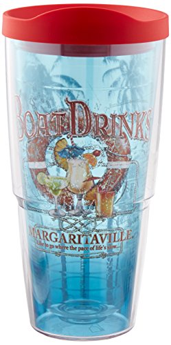 Tervis Margaretville Boat Drinks Blue Wrap Tumbler with Red Lid, 24 oz, Clear