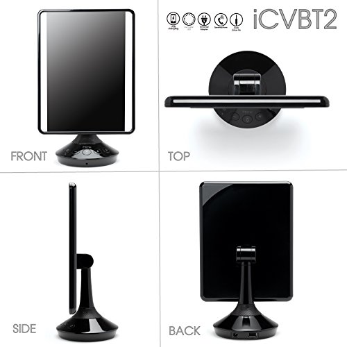 Look your best while enjoying your favorite music anywhere you?like. The iCVBT2 distortion free mirror is ideal for the best beauty routine?and detailed grooming.?Bright accent LEDs with high and low?settings provide natural looking light for a look that's right in any?situation. Stream audio wirelessly via Bluetooth from your mobile?device.?iCVBT2?Built-in mic, digital voice echo cancellation and answer and?end controls make speakerphone use a pleasure.?Siri Google Now support iCVBT2?to enjoy voice control features like?playlists, weather, news and other requests.?1 Amp USB port to charge mobile devices.?The bright LEDs and audio work independently while operating on the included AC adapter. iCVBT2?Features - Accent LED lighting with high and low light settings