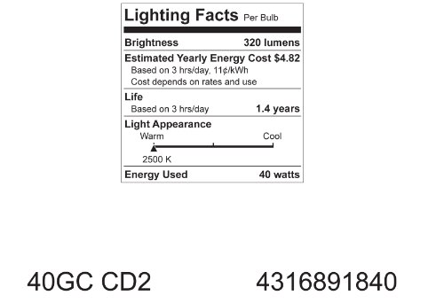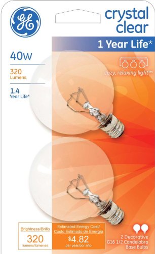 GE Lighting 17730 40-Watt Candelabra G16.5 Globe Bulbs, Crystal Clear, 2-Pack