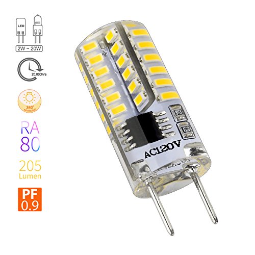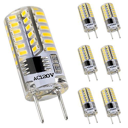 G8 LED Bulb, 120V AC, 20W Clear Glass ( Daylight White 6000K ) Halogen Xenon Replacement, 2 Watt, T4 JCD Type, G8 Bi-Pin Base for Under Cabinet Puck Light, Applicance Lighting, 6-Pack
