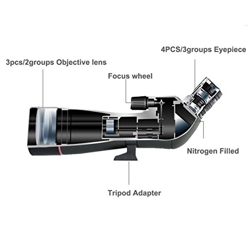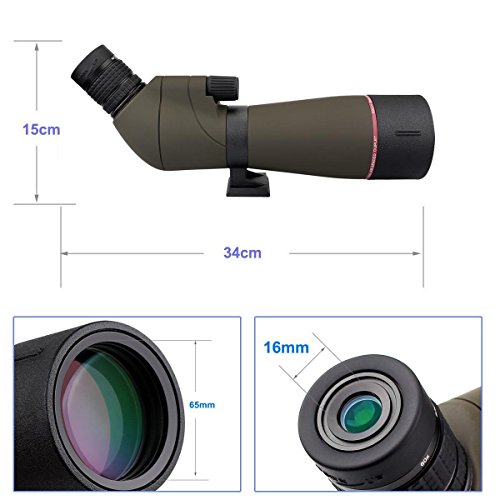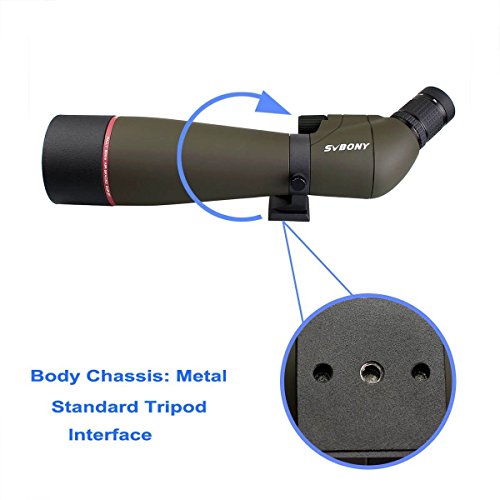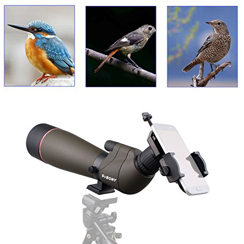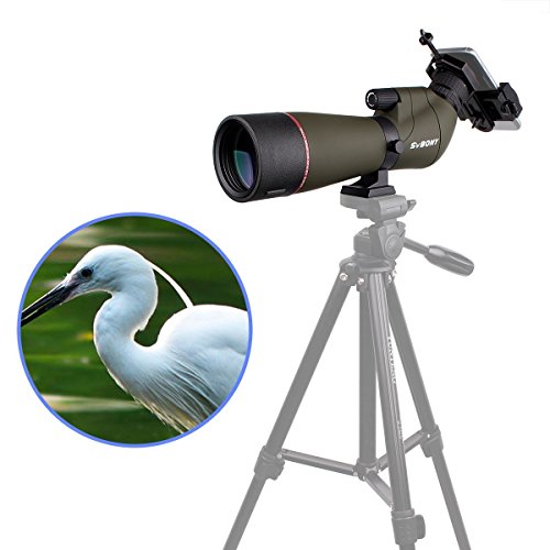 -. Binding : Misc. -. Brand : SVBONY -. Department : hunter;shooter;outdoor lover;camper;backpacking -. Feature : Premium quality P.R.Ism lens;sets a high standard for optical performance;excellent light transmission and sharp image is assured by fully multi layer anti reflection coatings on the objective lens as well as on the zoom eyepiece and P.R.Isms / 20-60x65/80mm magnification;the dynamic lens focusing system makes it easy to zoom in on target;adjustable zoom magnification with quick access focus which offers images that are noticeably brighter and sharper / Waterproof fogproof spotting scope with tabletop tripod;ideal for all weather conditions;housed in a rubber armor covering to protect the scope from harsh weather conditions and includes an attached lens cover for added protection / 65mm or 80mm Large objective lens diameter;amazingly vivid and clear;easy and fast focus best spotting scope use in a woods for shots;have a better chance of viewing with shaded conditions;this has no problem giving a bright; sharp view of the target / Perfect combination;spotting scope with tripod and universal phone adapter perfects for pictures and video clips of birds;outdoor wildlife and planes;in great distances;digitally store the images and video clips easily -. IsAutographed : 0 -. IsMemorabilia : 0 -. Label : SVBONY -. Manufacturer : SVBONY -. ProductGroup : Sports -. ProductTypeName : SPORTING_GOODS -. Publisher : SVBONY -. Size : Medium -. Studio : SVBONY -. Title : SVBONY 20-60x65mm/20-60x80 Outdoor Shooting Hunting Spotting Scopes Bak4 Bird Watching Scope Telescope FMC Green Lens with Tripod and Phone Adapter
