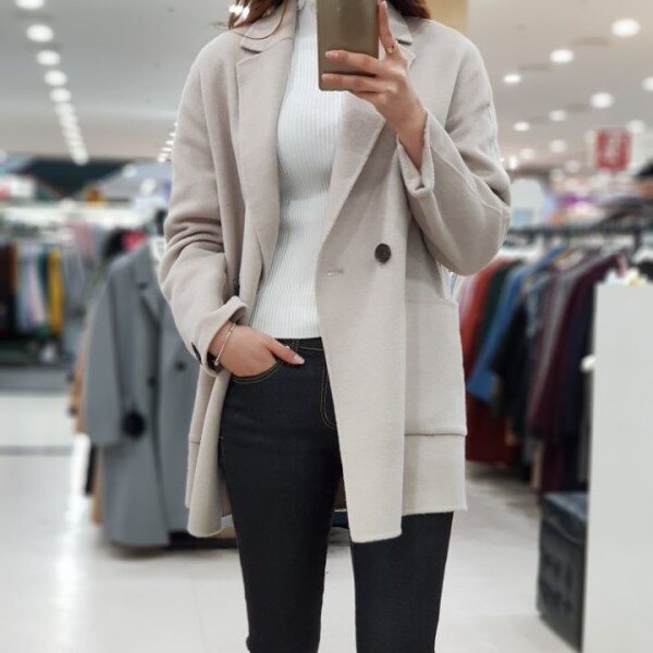 파스텔 톤의 컬러감이 너무나 예쁜 ab.f.z 핸드메이드 하프 코트입니다.힙을 덮는 단정한 길이감과 여성스러운 부드러운 분위기가 돋보이는 파스텔 톤의 예쁜 상품입니다.더블 버튼으로, 오픈 클로징 고루 예쁘고 양사이드에 포켓이 러블리함과 실용성을 더한 데일리 상품입니다.핸드메이드인 만큼 얇은 감이 있으나 모가 들어가 따뜻해요 :-)낙낙한 폼이라 폴라니트 등 두껍게 입어도 슬림한 핏이 완성됩니다.