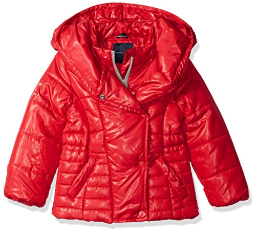 Tommy Hilfiger Little Girls' Toddler Pillow Collar Promo Puffer Jacket with Belt, Apple Red, 4T
