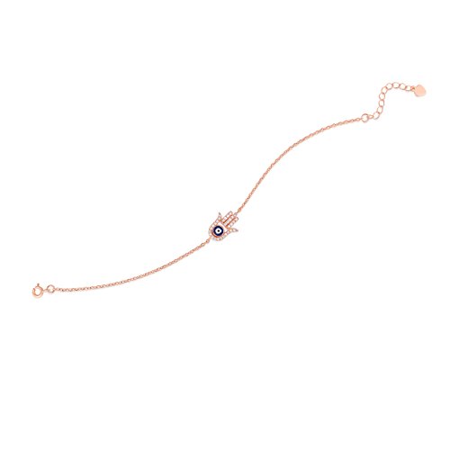 -. Title : Sterling Silver Cubic Zirconia/ Evil Eye/ Hamsa Bracelet with Adjustable Length 6"- 8".