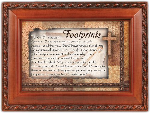 FOOTPRINTS COTTAGE GARDEN INSPIRATIONAL WOODGRAIN TRADITIONAL MUSIC BOX PLAYS AMAZING GRACE