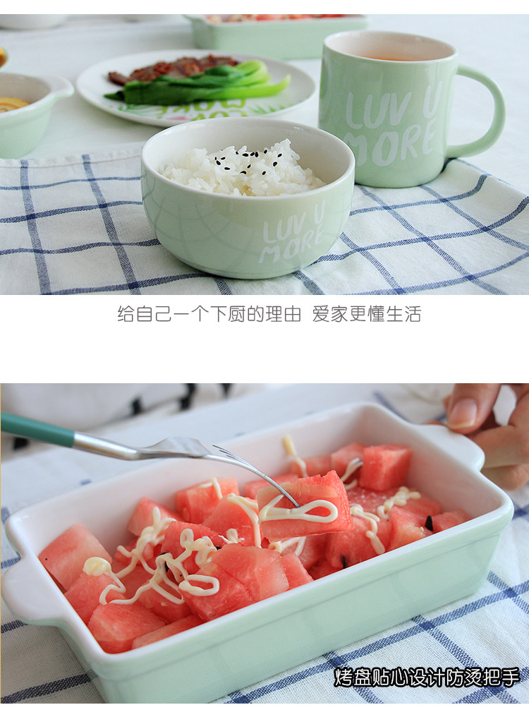 创意可爱陶瓷餐具不规则家用菜盘子吃饭碗套装微波炉长方形烤盘