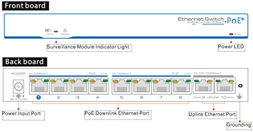 Port:10 Port with Eight 10/100Mbps POE ports and two 10/100/1000Base-TX Gigabit uplink ports