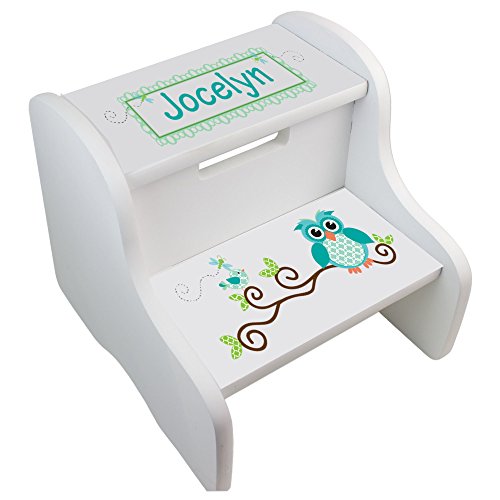 -. Title : Personalized Blue Gingham Owl White Two Step Stool