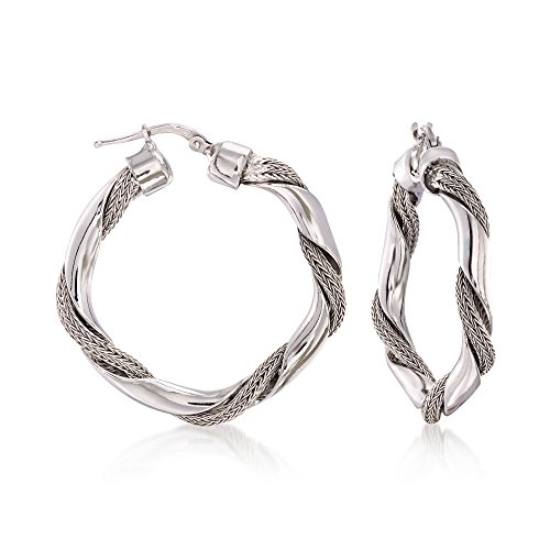 Ross-Simons is the authority on fashionable must-haves. Angular, polished hoop earrings wrapped with braided chains. Made in Italy. Hanging length is 1 3/8". Snap-bar, sterling silver hoop earrings. Each Ross-Simons item arrives in a fine jewelry presentation box. Shop Ross-Simons jewelry risk-free as all items include a 30-day, 100% money-back guarantee.Feature