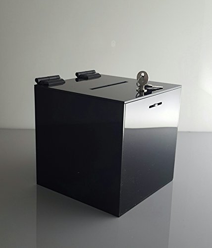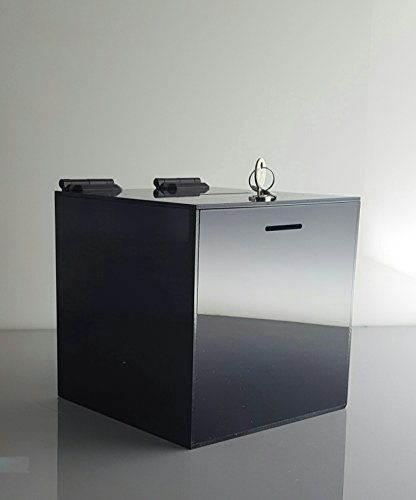 T'z Tagz Brand Black 8"l X 8"w X 8"h Acrylic Charity / Donation / Ballot / Tip Box Container with High Quality Cam Lock