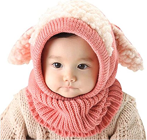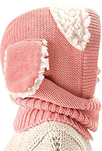 Baby Girls Boys Winter Hat Scarf Earflap Hood Scarves Caps (Pink)