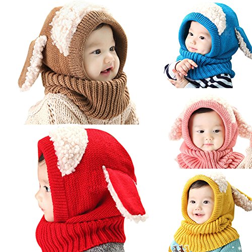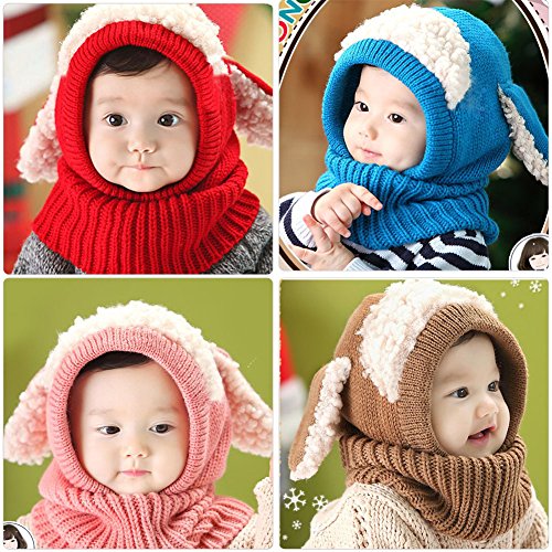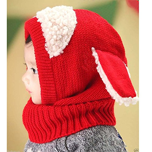 Baby Girls Boys Winter Hat Scarf Earflap Hood Scarves Caps (Red)