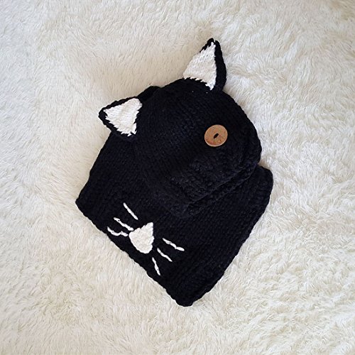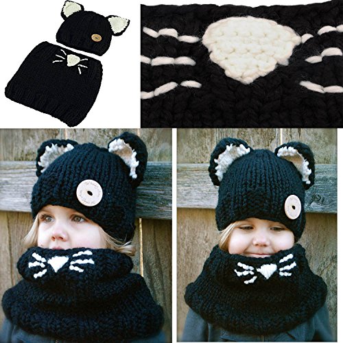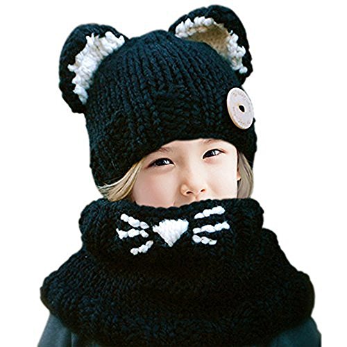 Baby Girls Boys Winter Hat Scarf Earflap Hood Scarves Caps (Black (2-8 years old))