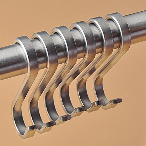- Brushed s shape chrome finish stainless steel hanging hooks for kitchenware,pots,spoon, pan, pot,utensil,plants,towels,gardening tools,clothes,could hold up to 5KG