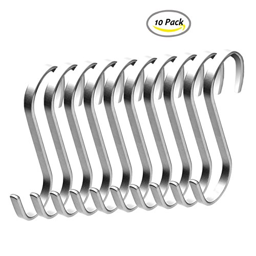 S Hooks For Hanging,Ulifestar Stainless Steel Heavy Duty Metal S Hanger Hook Rack for Kitchen Pots Pans Storage & Organizer,Bathroom Towel Clothes Coat Utility Hooks 10 Pcs Pack Large (Flat)