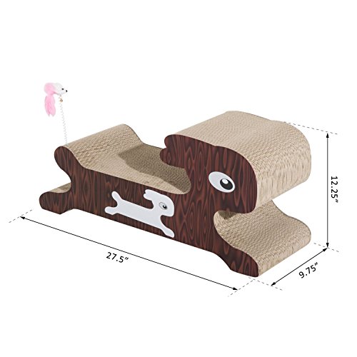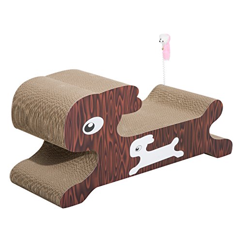 -. Title : Pawhut 28” Corrugated Cardboard Cat Scratcher Lounger - Rabbit Shape with Toy